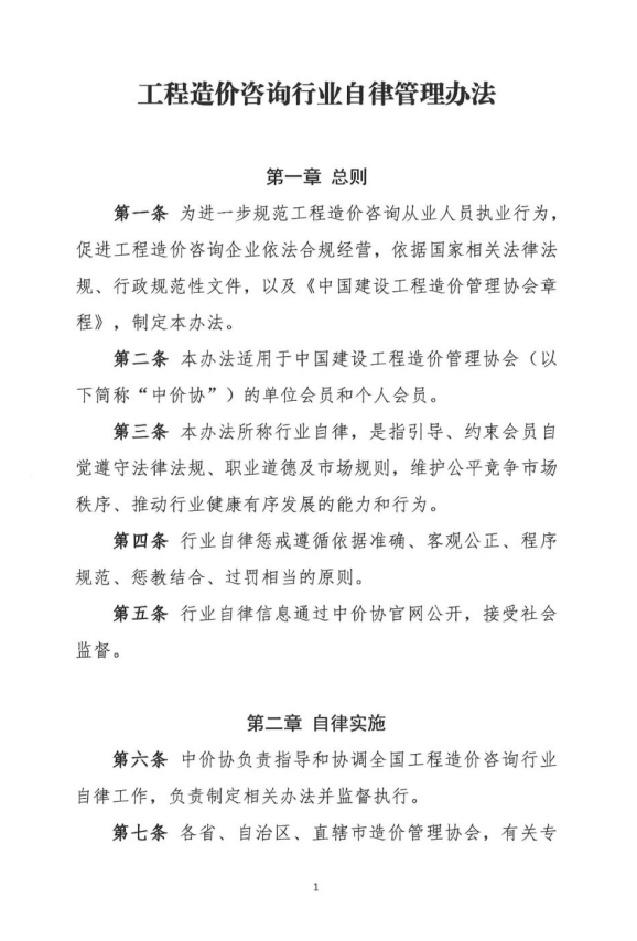中国建设工程造价管理协会 关于印发《工程造价咨询行业自律管理办法》的通知